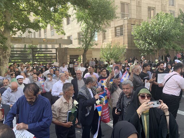 به گزارش ایسنا، جمعی از اساتید و فعالان عرصه قرآن امروز دوشنبه (۱۲ تیرماه) با حضور در مقابل سفارت سوئد و با سر دادن شعارهای مرگ بر استکبار و مرگ بر آمریکا نفرت خود را نسبت به این هتاکی نشان دادند.